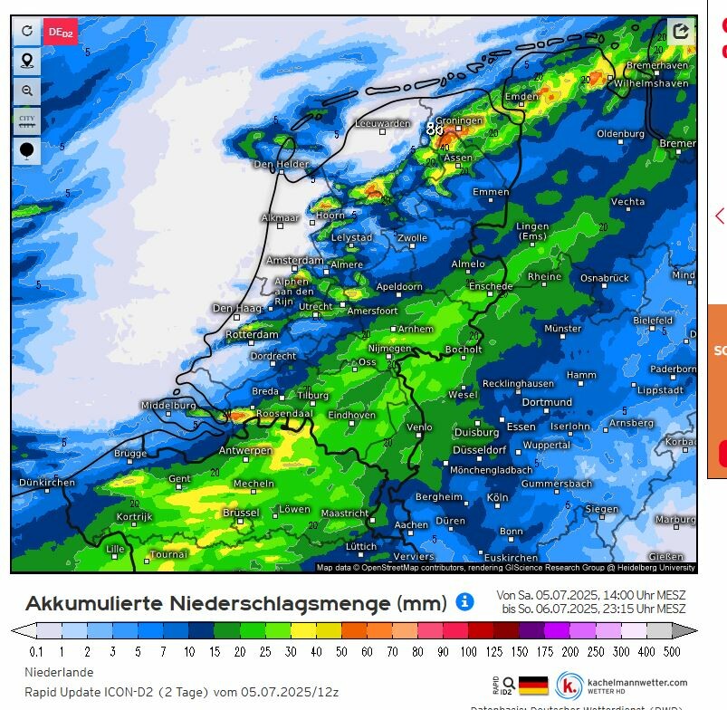 Ik weet niet welk punt je wilt maken? Je toont een kaart van één model op één moment van gisteren. Ik kan er dan een kaart van ICON-D2 tegenover zetten die een heel ander beeld laat zien voor Friesland. EC-Oper was ook veel behoudender voor Friesland.