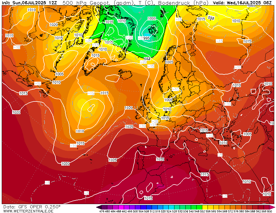 Ja ik geef toe, het is cherry picking binnen de laatste GFS oper run maar de laatste runs zie je een andere setting ontstaan met hogedruk veel breder georiënteerd en meer risico op koude putten en/of andere luizen in de pels zoals hieronder te zien. Verder nog altijd goed zomerweer in de regel maar een eventueel glorieus bericht van zomerzekerheid is toch weer wat verder weg