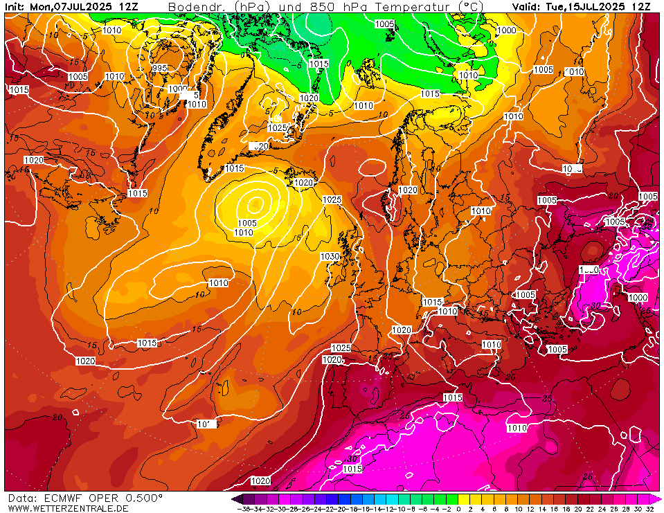 Absoluut in deze run. Maar bijzonder is wel de hoge T850’s daarbij. Diep noord en toch zo warm op hoogte. Helaas zullen de noordelijke kustgebieden daar weinig van profiteren met aanlandig noord. Dieper naar het binnenland wel zomers. Maar zelfs het noorden zal met zulke waarden en het warme zeewater echt niet meer kil worden vermoed ik.