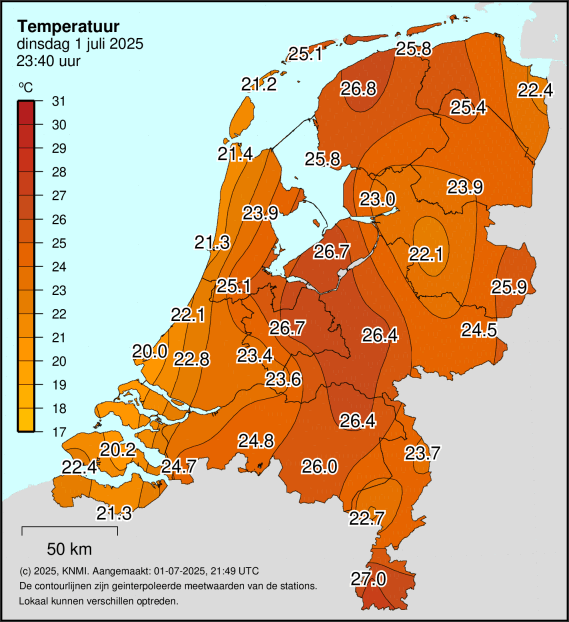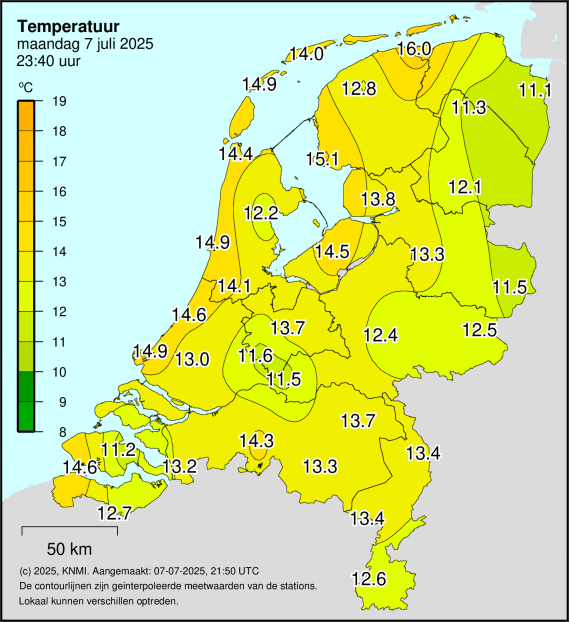 Toevallig ongeveer de helft van de waarden dichter bij nul, voor de actuele temperatuur om 23:40. In grote delen van het land tenminste. Vond het wel een grappig gegeven. Exteem tegenover vrij normaal, in stedelijk gebied helemaal.