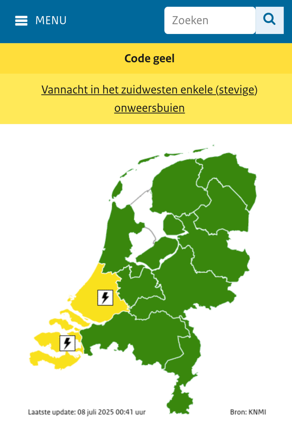 Re: Trek code geel voor onweer maar in voor Zeeland.