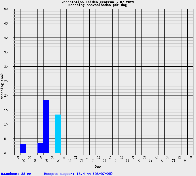 Juli neerslag: 38,0 | normaal is: 85,3 mm