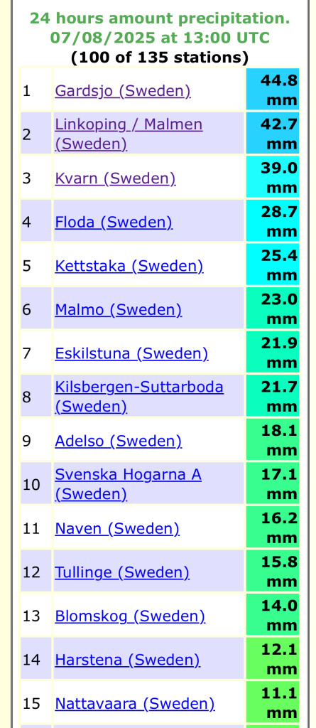 al met al mooie neerslagsommen. De eerste drie stations van de top 15 heb ik gecontroleerd op neerslag de 24u ervoor dus 7 juli maar dat was marginaal, oftewel te weinig om ook te vermelden.