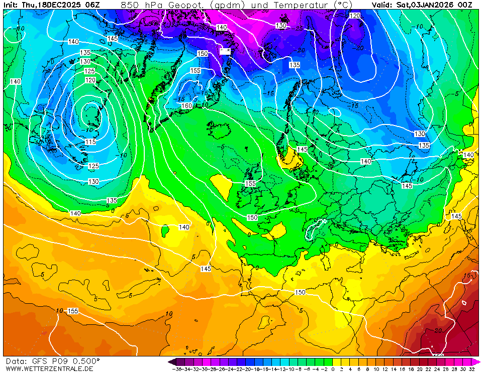 Bij lid 9 reikt de 20°C op 850 hPa zelfs tot aan zuid Zweden