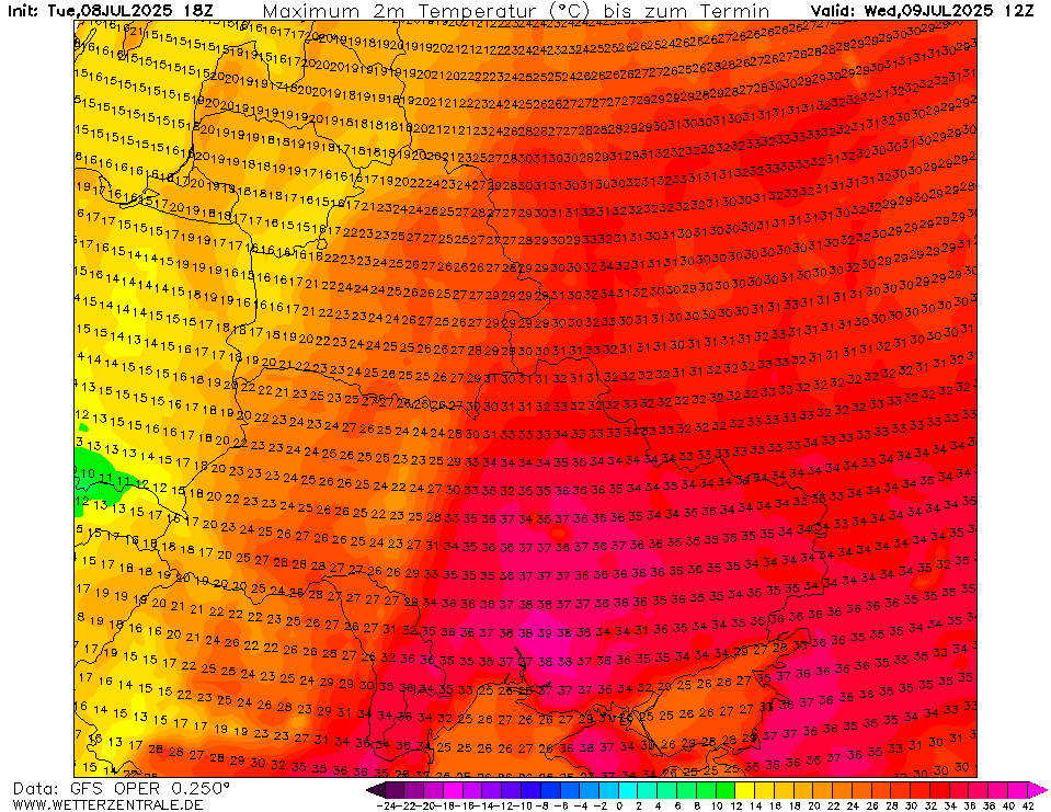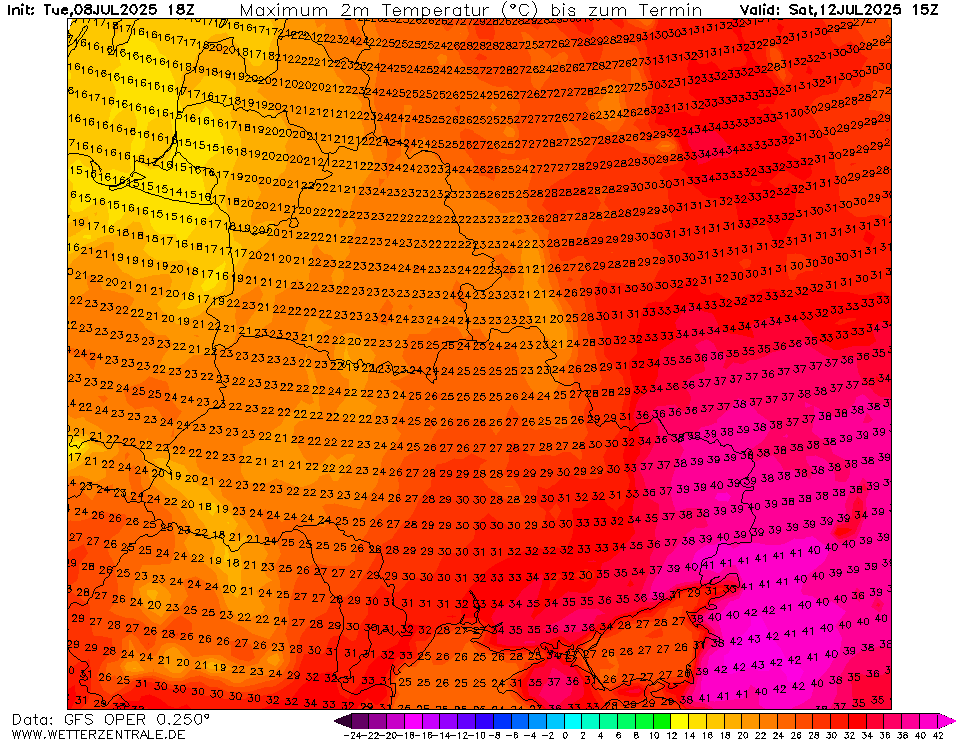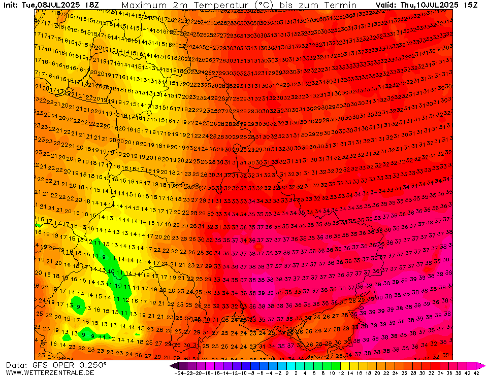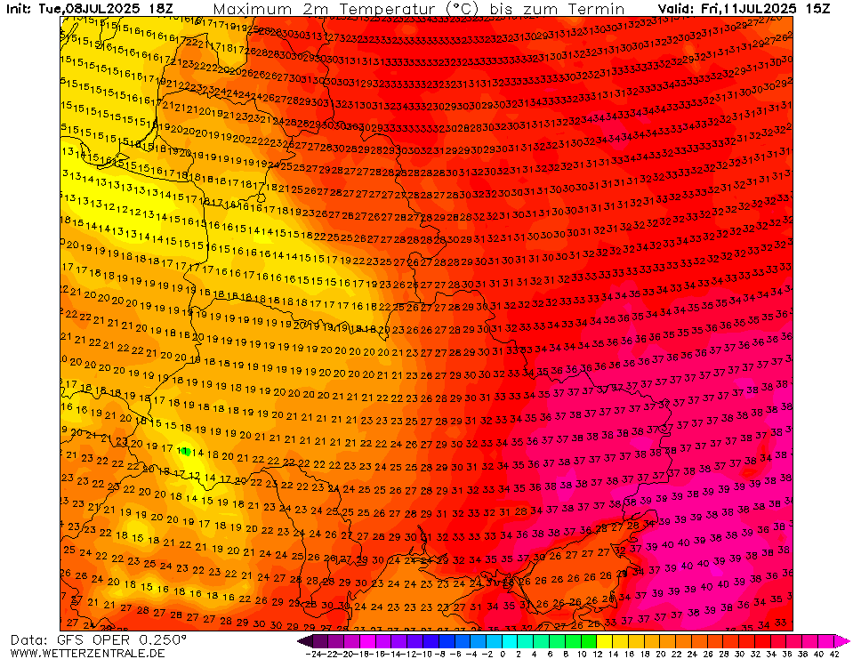 De hele week ruime 35+ temperaturen in delen van dat land. Zaterdag komt GFS lokaal zelfs met 40°C in de Donbas. Je zou er maar moeten staan in een oorlog...