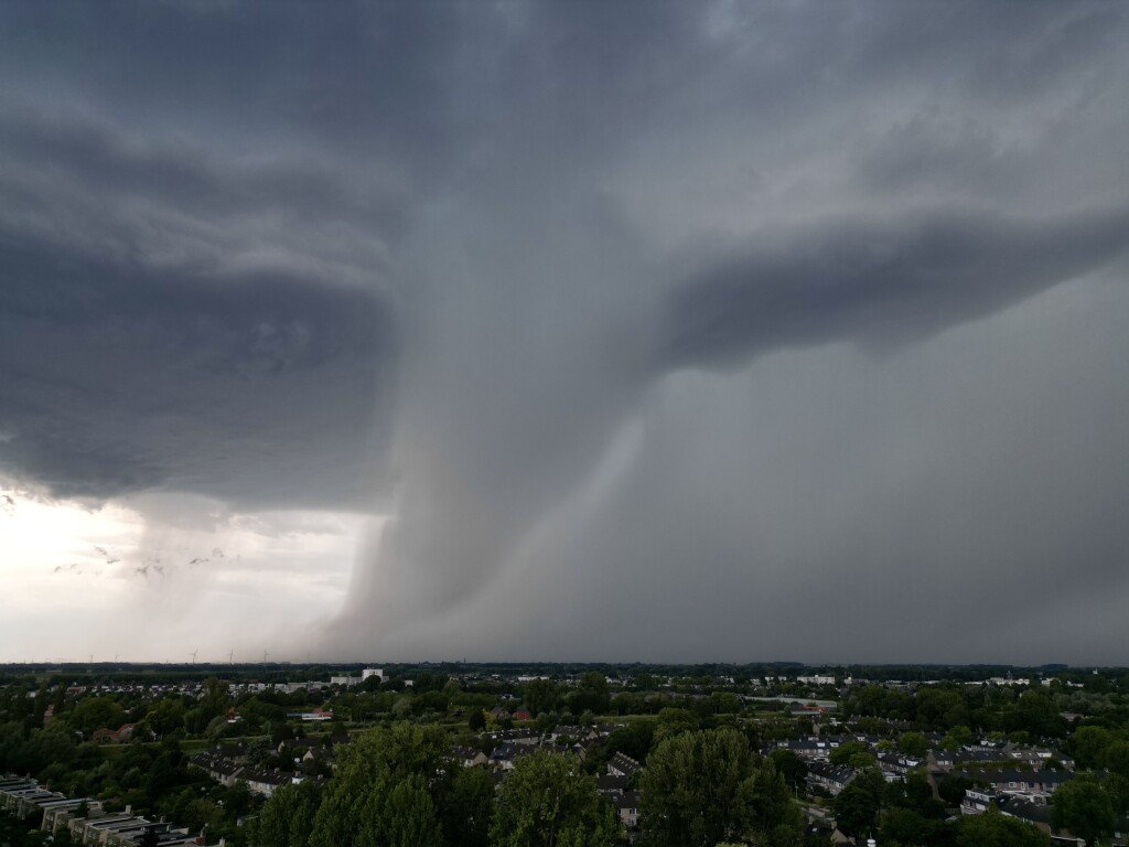 Het leek recht over mij heen te trekken, maar het bleef uiteindelijk bij een paar dikke druppels. In het westen van Arnhem toen wel tientallen millimeters geloof ik. Maar de meso trok hier wel recht over mijn huis, wat echt indrukwekkend was! In het bijgevoegde filmpje zie je goed de rotatie.