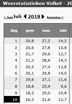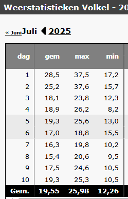 Maar 1 en 2 juli waren wel uitzonderlijk warm (lees: heet). 7x warmer tijdens de eerste decade van 2018, 3x warmer in de eerste decade juli 2025. Zowel voor de Tg als Tx.