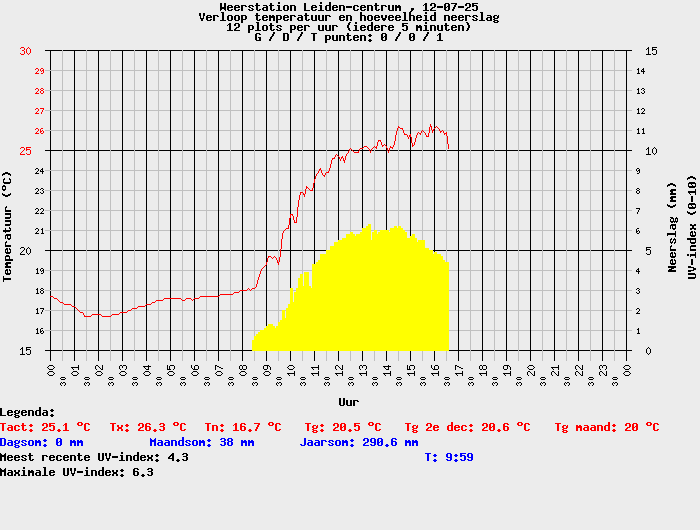 4e zomerse dag op rij hier | Tact: 25,1°C | Tx: 26,3°C