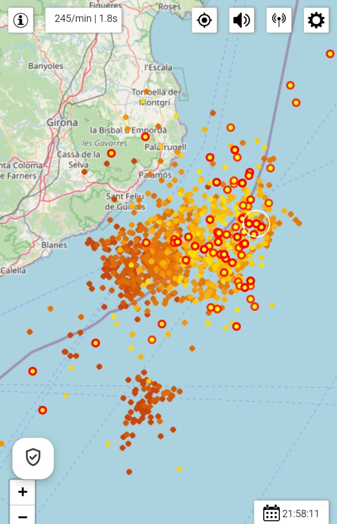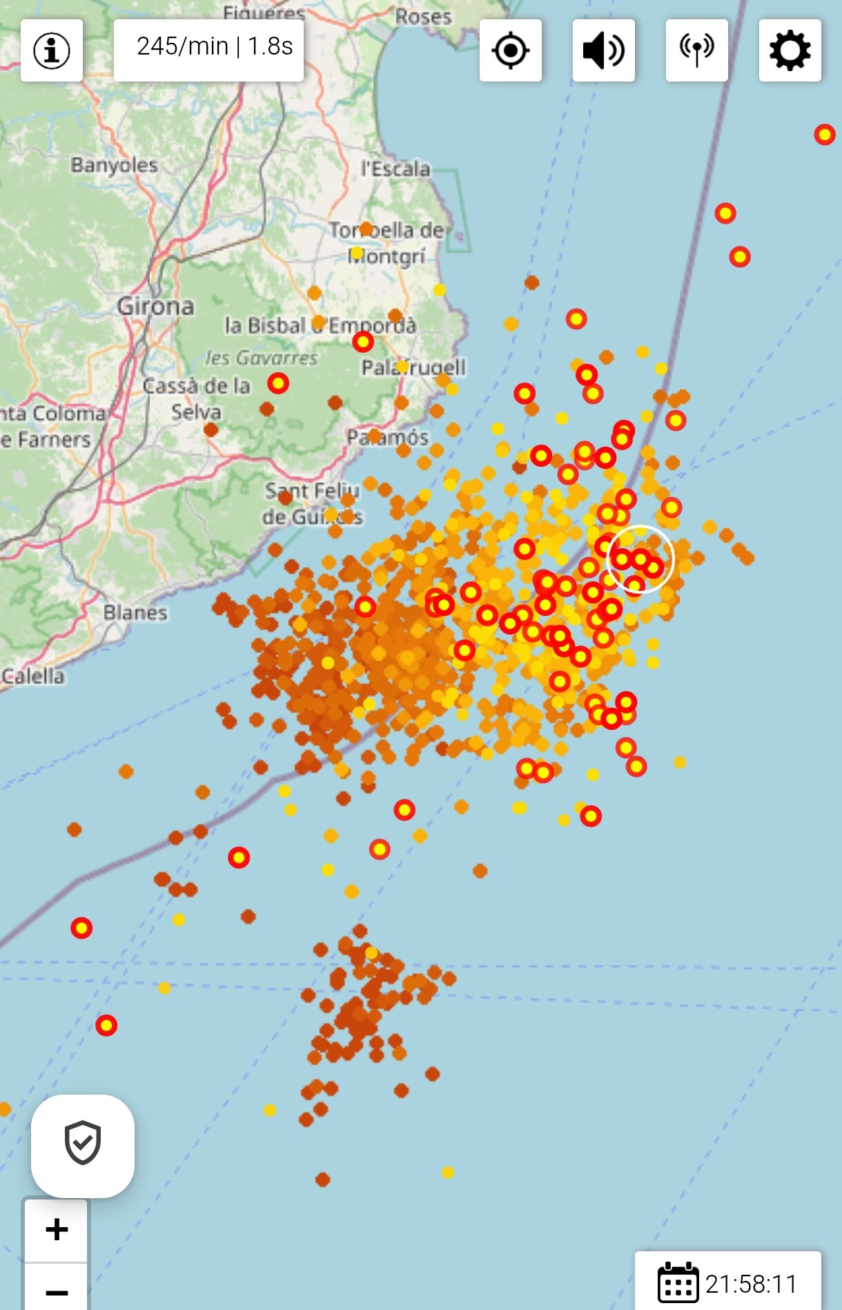 Momenteel ligt het boven zee en mijn buren genieten van een ware lichtshow. Meer dan 1 ontlading per minuut. Veel anvil crawlers. En dat type bliksem kenden ze nog niet. Hierbij één still omdat een filmpje uploaden niet kan.