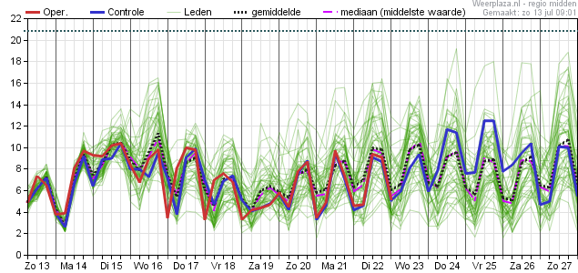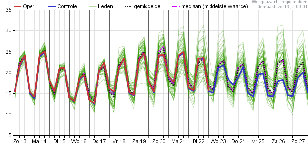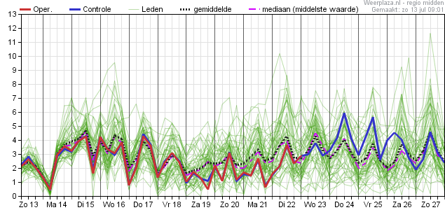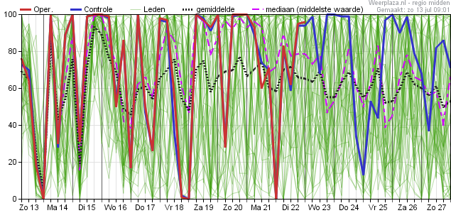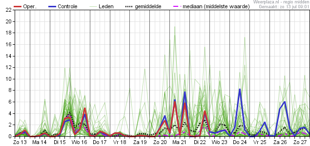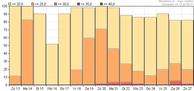 Temp tussen 25 en 30, neerslag signalen bij hoog dauwpunt   ( 594)