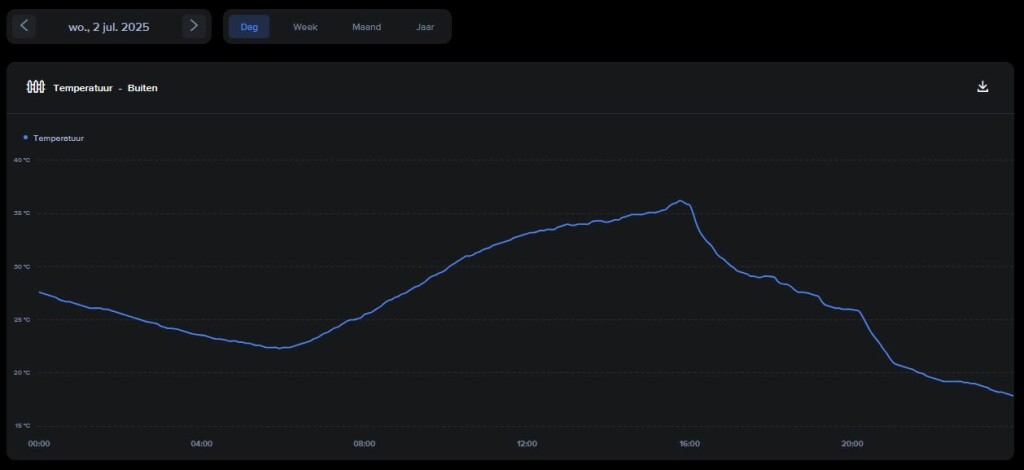 Kijk maar naar dit voorbeeld. In de nacht van 1 op 2 juli werd het hier niet kouder dan 22,4 (!) graden, dus een overduidelijke tropennacht en overdag steeg de temperatuur naar 36,2 graden. Maar... in de avond arriveerde de koelere lucht en zo werd het minimum van dit etmaal 17,8 graden (zie NetAtmo registratie)
