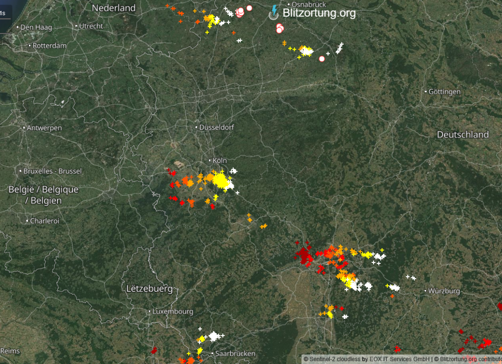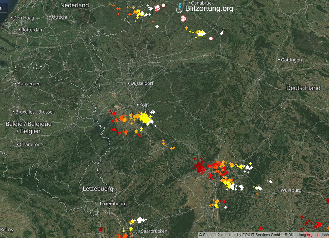 Er was een heel klein beetje onweer in Nederland, ongeveer langs de grens van Gelderland en Overijssel. Dat is nu in Duitsland iets actiever geworden.