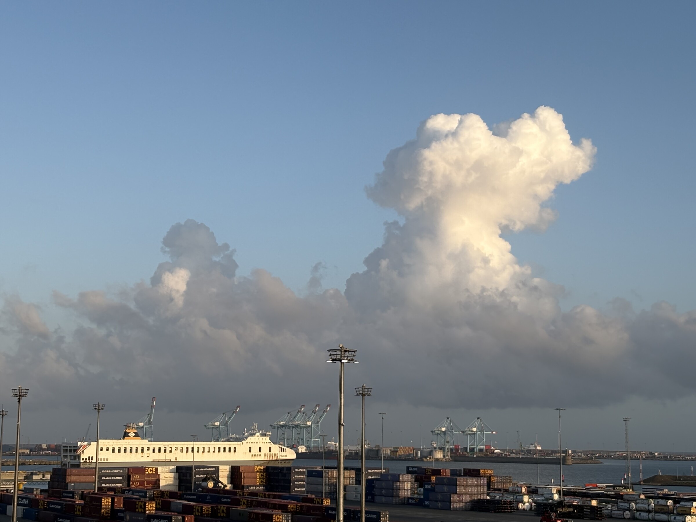 Goedemorgen Tact 15.5, veel wind en convectie boven zee.