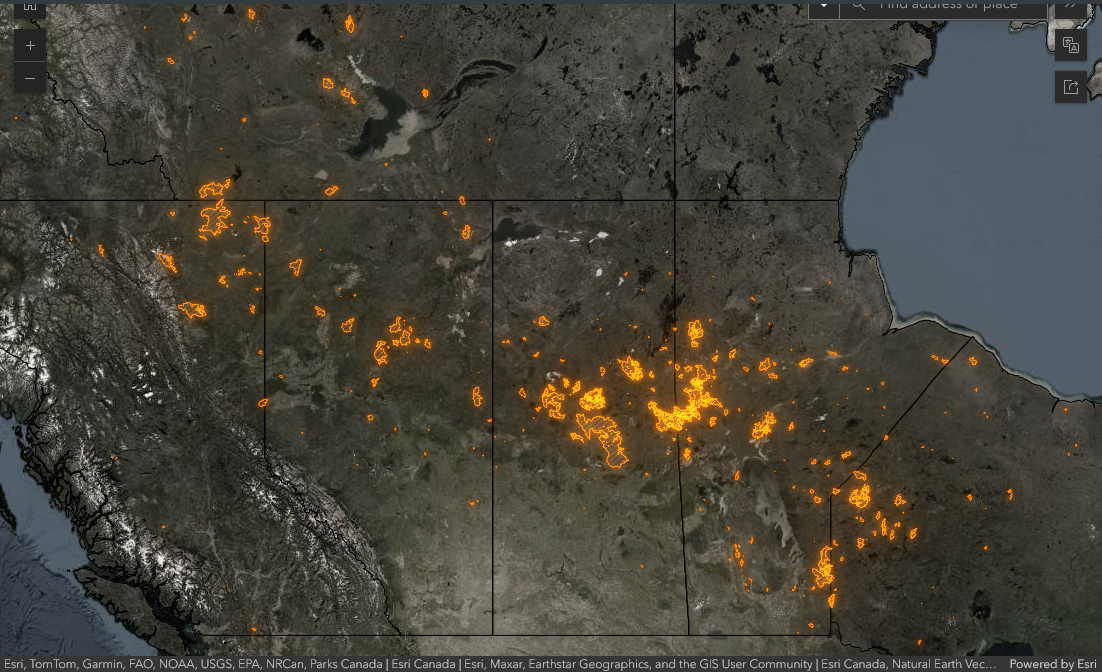 Ik heb even eeen HYSPLIT-run gedaan vanuit dat gebied. Op geringe hoogte blijft de luchtstroming in Canada, wat dus grote overlast zal geven, omdat de rook maar weinig verdunt. Op 5 kilometer hoogte komt de lucht min of meer onze kant op; dat dan over ongeveer een week.