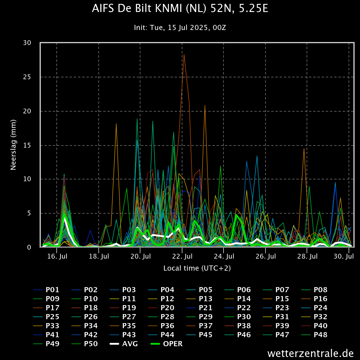 Vanaf 19 juli wisselvalliger, maar de hoeveelheden lijken mee (of tegen) te vallen en na een klein (werk)weekje wisselvalligheid droogt het ensemble ook wat op.