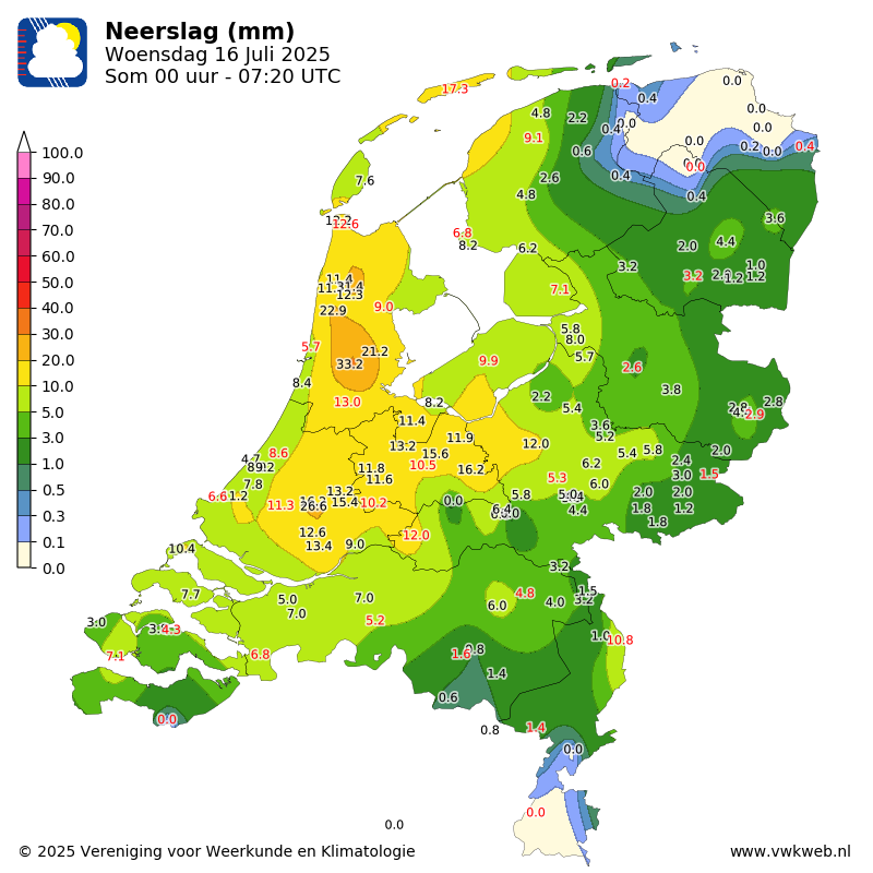Verwachtte hoeveelheden toch heel netjes, alleen meer naar het ZW.   ( 199)