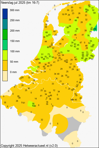 Ben wel benieuwd hoe dezelfde kaart er aan jullie kant van de landsgrenzen uit zou zien namelijk. In elk geval is het vanaf grofweg de grens met Brabant naar het zuiden duidelijk droger.
