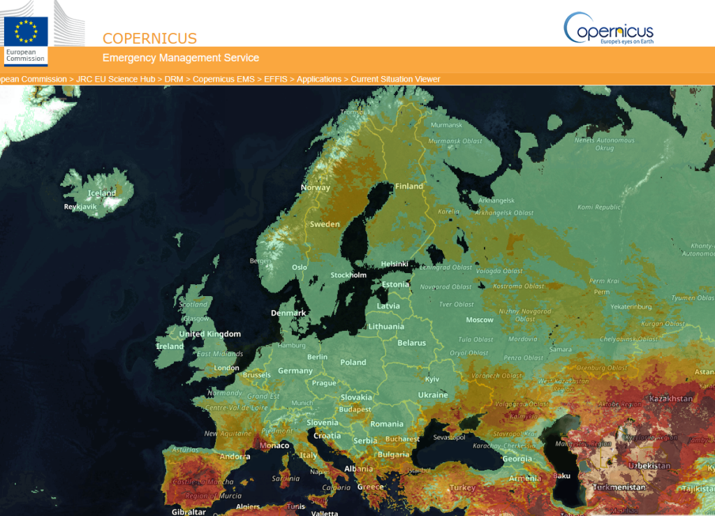 maar vooral in Zweden is het brandgevaar over een groot gebied aanzienlijk. Kaartje EC Fire Weather Index: