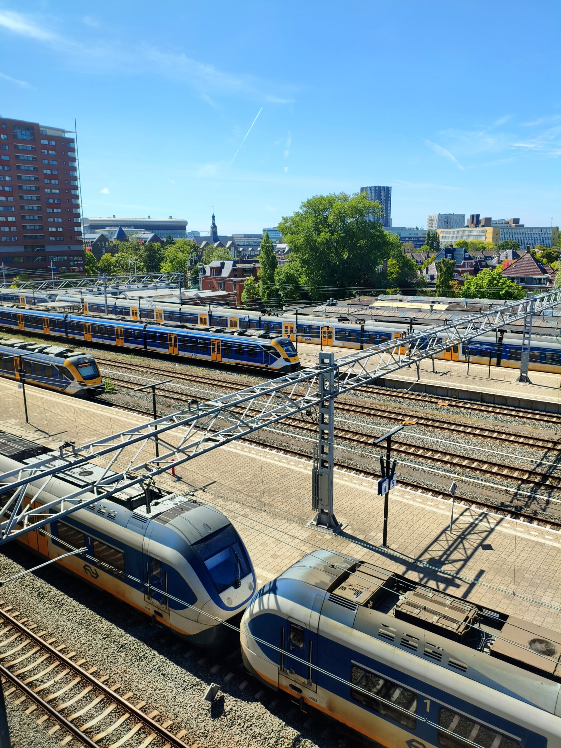 Stralend zonnig in Leiden met mooi uitzicht vanaf kantoor.