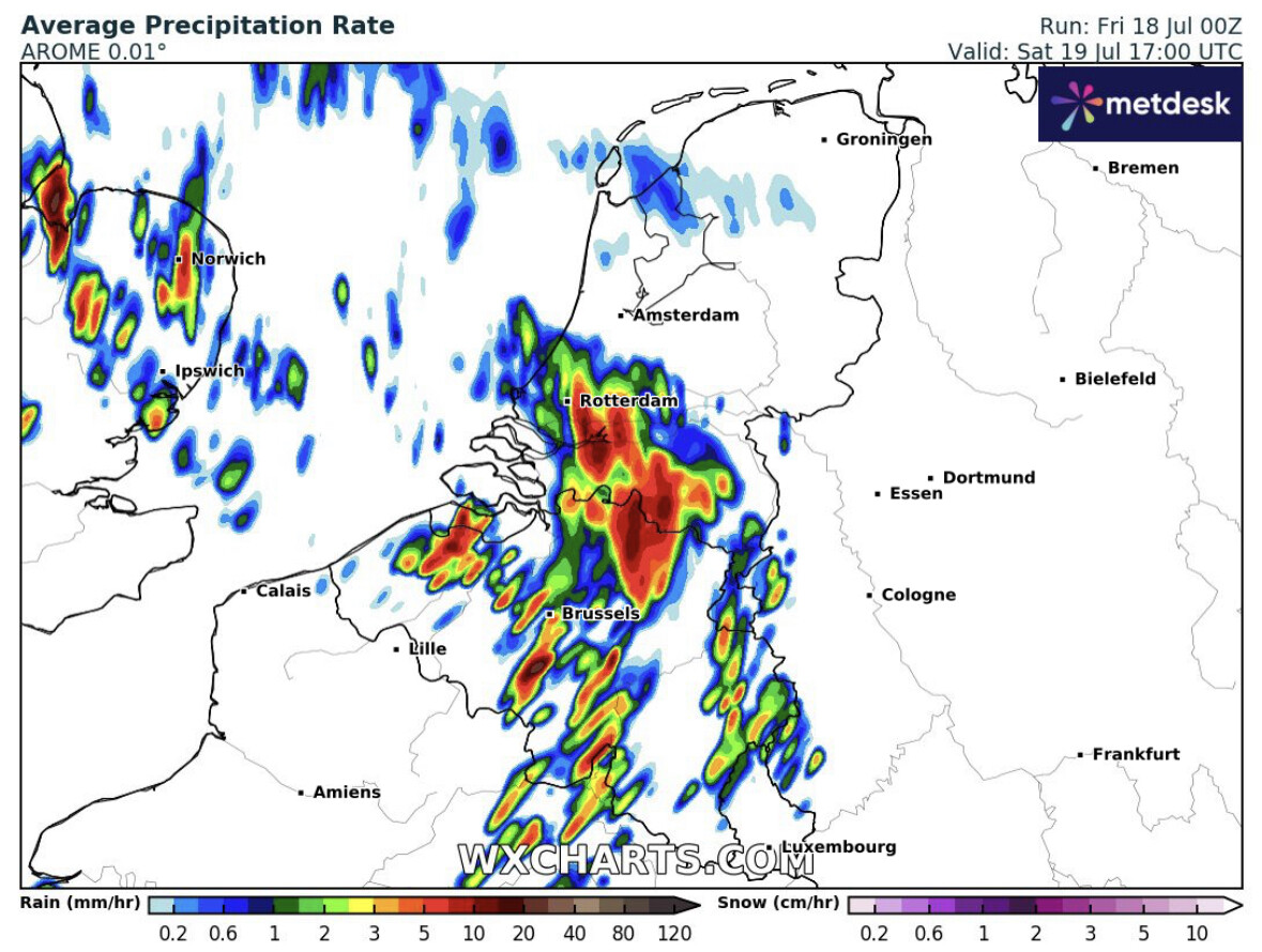Ziet er vrij stevig uit morgenavond. Ik herinner mij dat ze vroeger hagelkanonnen hebben ingezet tijdens Tomorrowland, zouden ze dit nog steeds doen?