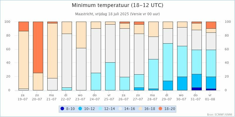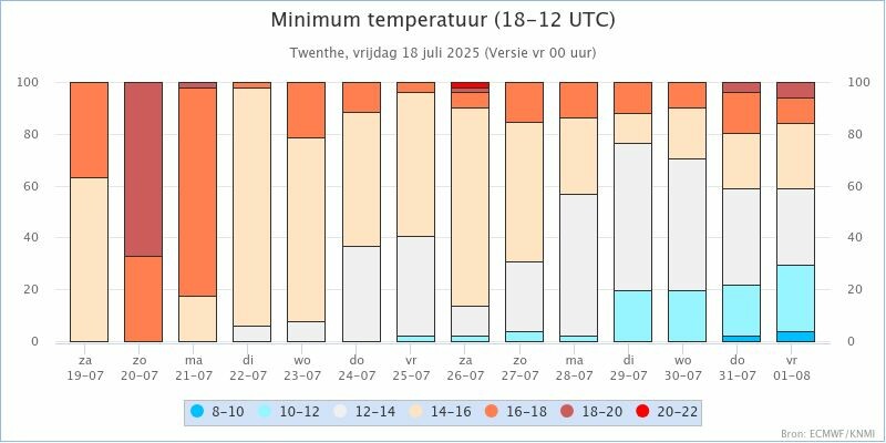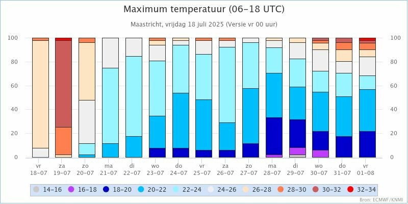 KNMI kansverwachtingen staafdiagram voor Twenthe en Maastricht: