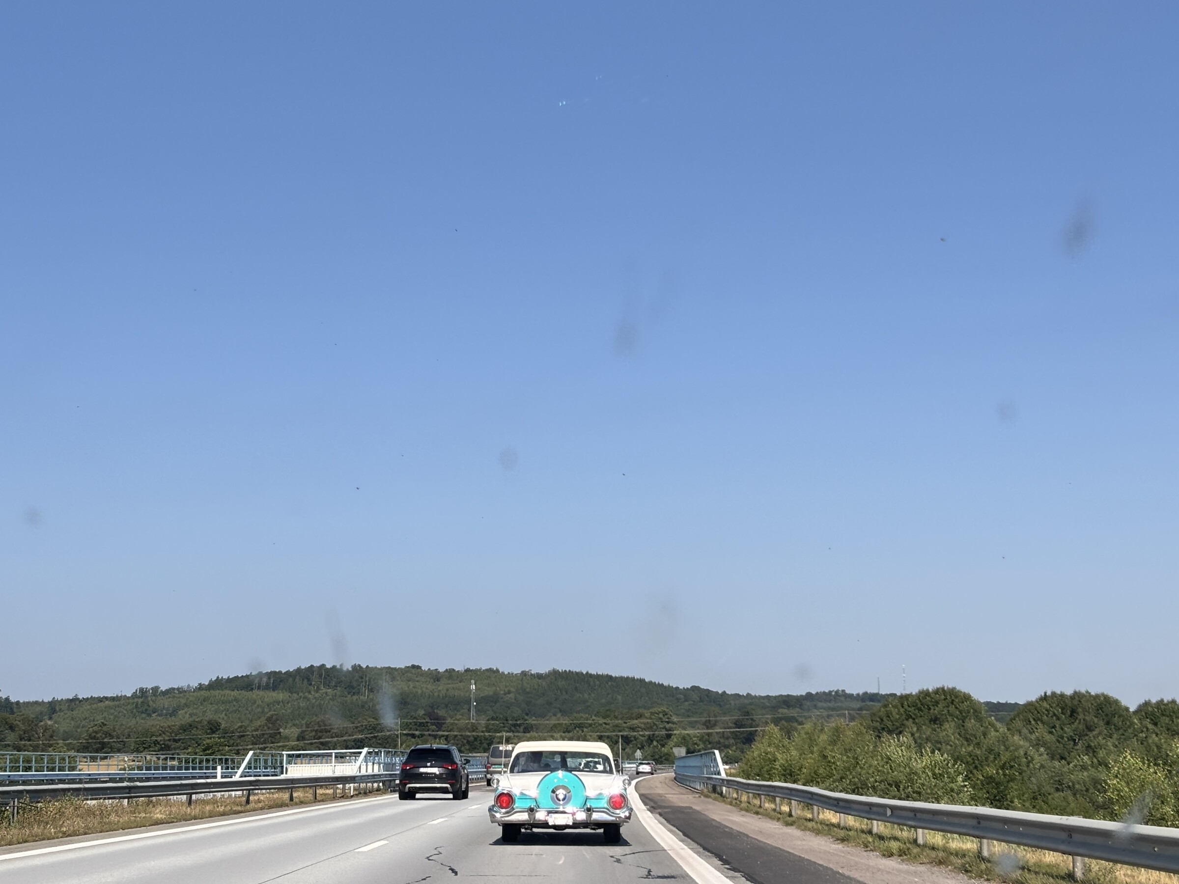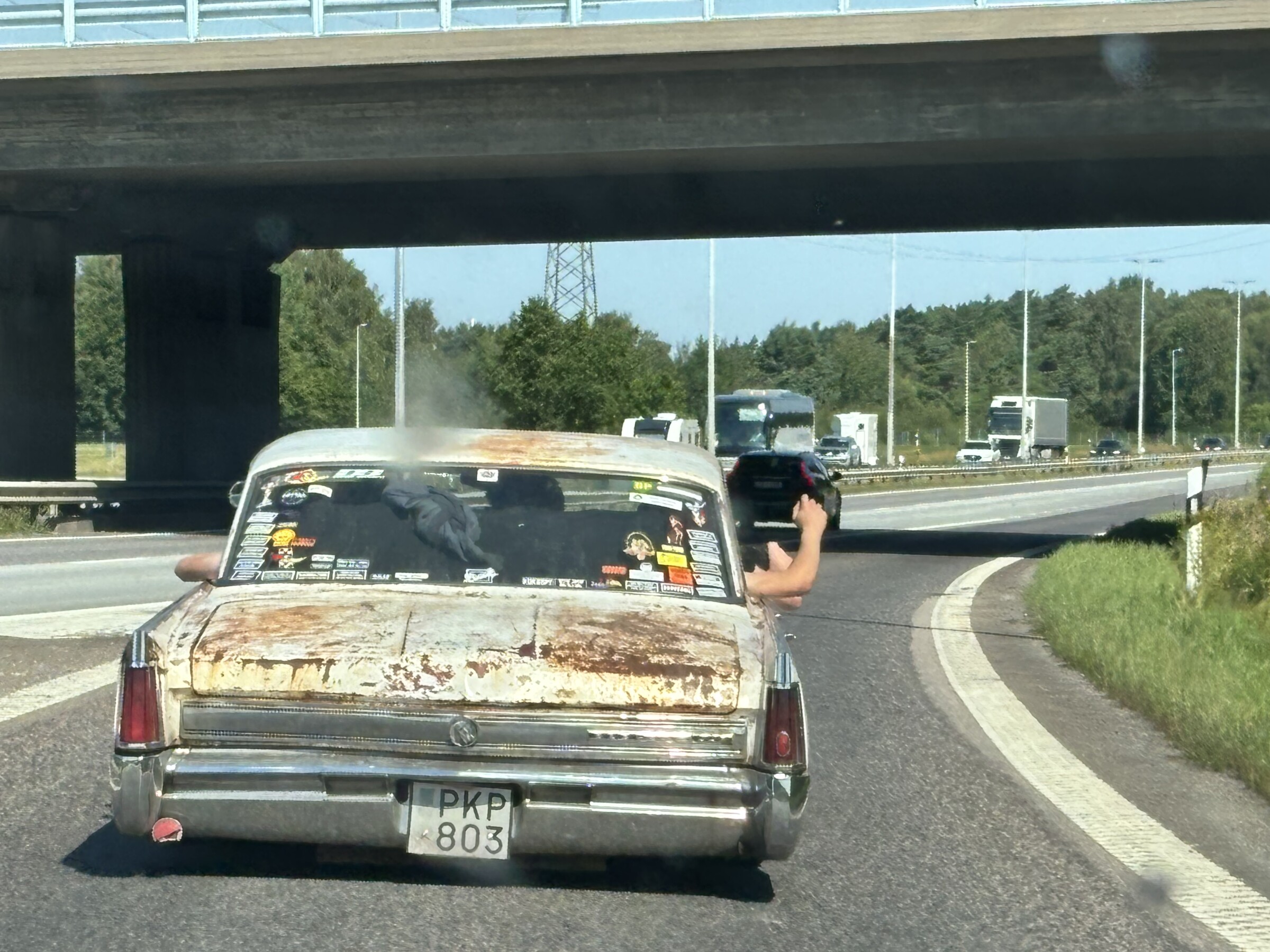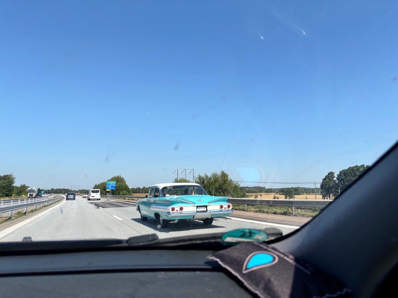 caddillac bijeenkomst verderop de route. Honderden rijden er hier voorbij in alle combinaties, van super netjes tot barrel.
