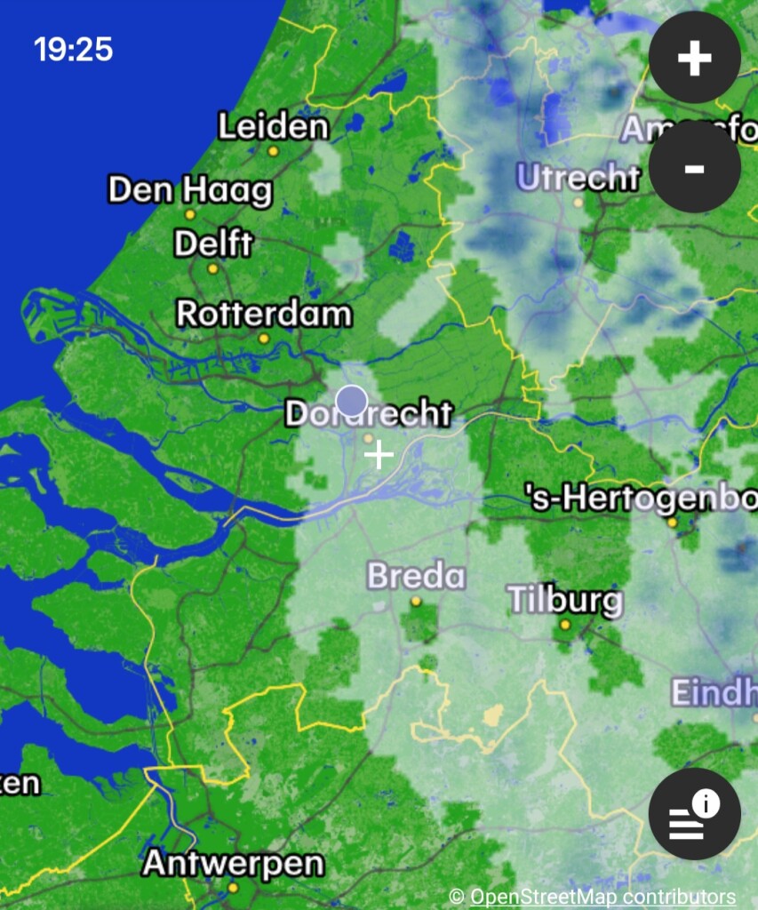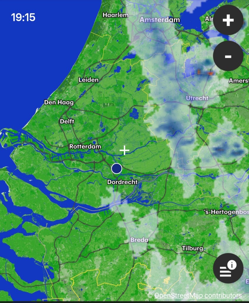 Ontstaat ineens razendsnel weer iets ten westen van die lijn. Begon hier ineens weer wat te regen. Had ik niet verwacht. Maar het zal wel niet veel meer worden.
