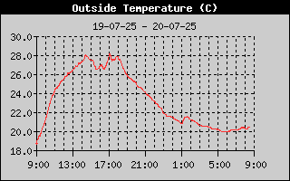 Ochtend. Tact 20.0C, RV 88%, 0.1 mm. Tn 19.8C
