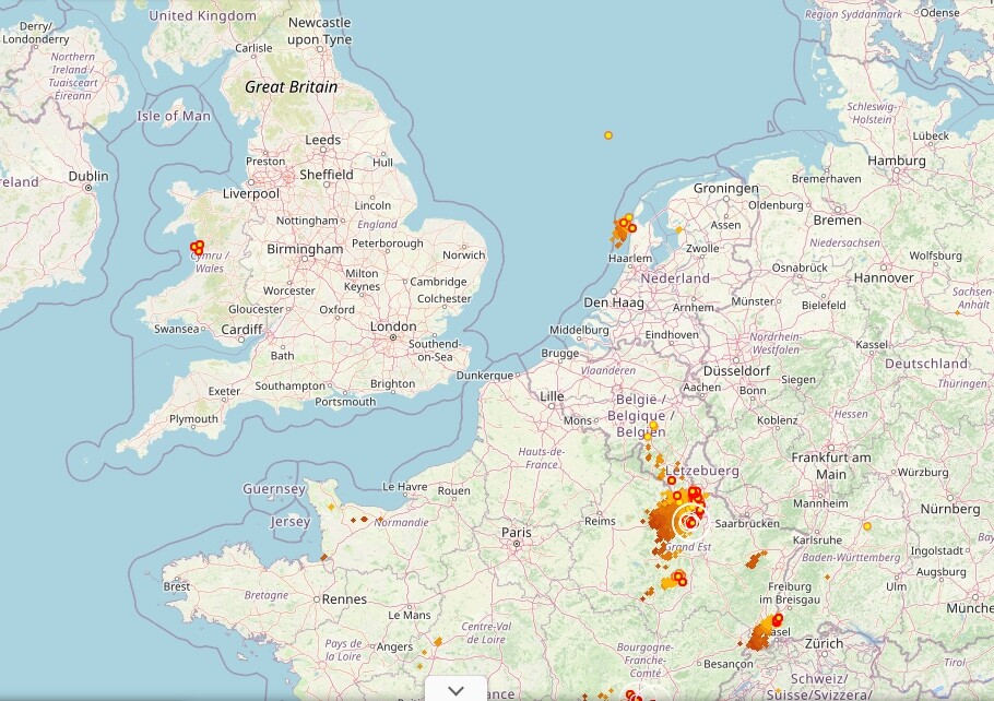 Zit alleen bij Luxemburg onweer op voor alsnog, en bij Herman wat onweer overigens.