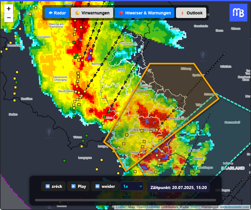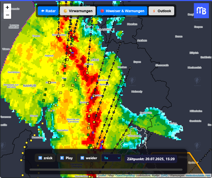 Hier een screenshot van de Skywatch van Meteo Boulaide (Philippe Ernzer). Ook nog een verder naar het noorden.