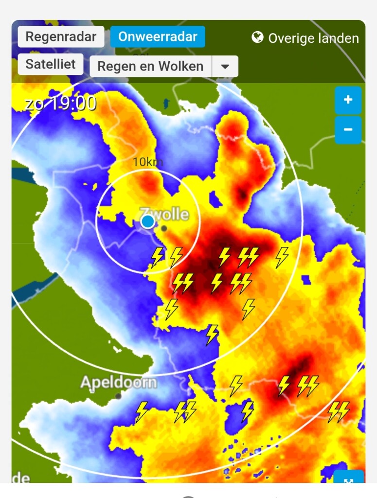 Vrij zicht op deze mooie buien. Onafgebroken gerommel..