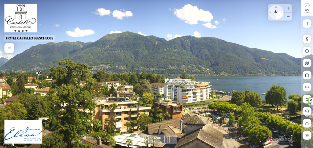 Zag vanochtend wel veel regen. Webcam in Ascona. Aan de overzijde, achter witte hotel, ligt San Nazzaro.