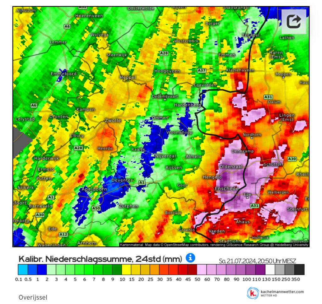 - in Losser en Enschede viel meer dan 100 mm regen in een paar uur tijd.
