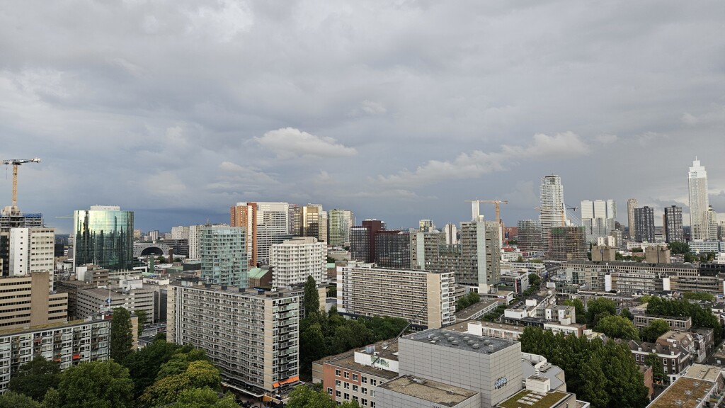 Zicht vanuit Rotterdam niet erg bijzonder. Wel een flinke bui idd.