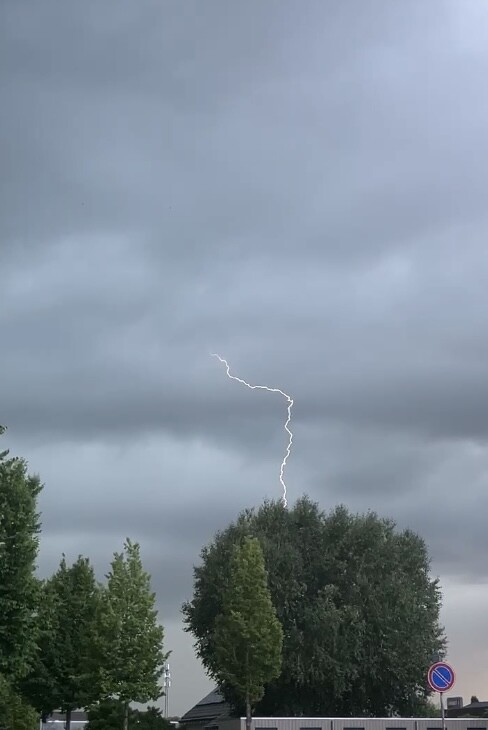 Hier wat rollende donders maar de bui trekt net oostelijk langs