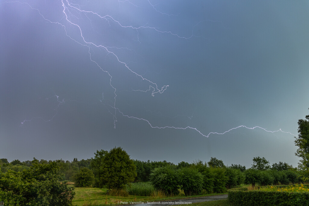 PS: de bliksembeelden zijn composietbeelden van 1 ontlading. Door de korte sluitertijd zijn verscheidene vertakkingen apart vastgelegd in de tijd en dus heb je de bliksem niet in zijn geheel in 1 frame. 's Nachts met langere sluitertijd is dit wel het geval, of zelfs meerdere aparte ontladingen.