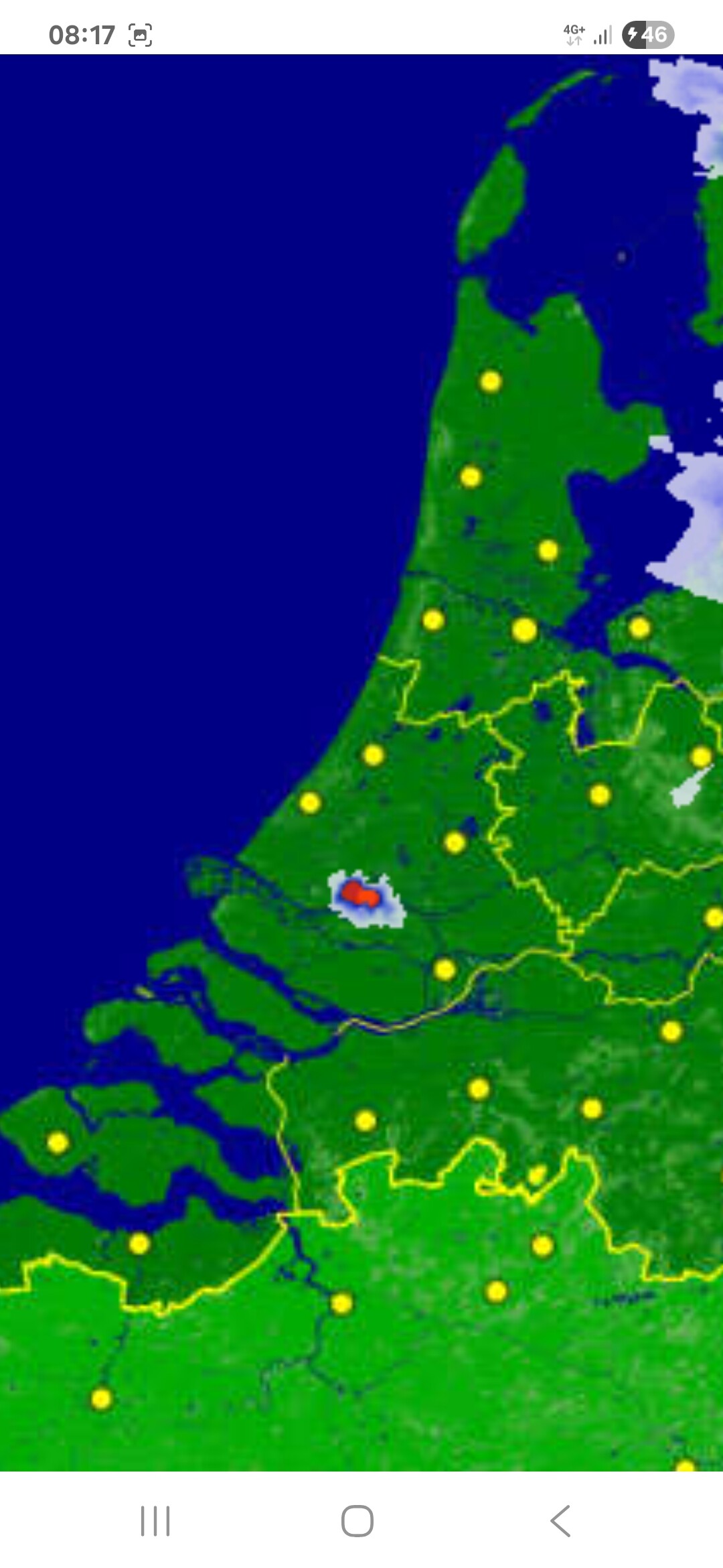 ..ik kijk gelijk op buienradar maar ik zag tot mijn verbazing helemaal niets, echt helemaal niets ook niet in de omgeving.