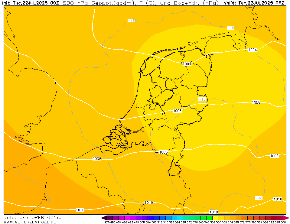 Eens, de potentie was uiteraard aanwezig, ik heb er zelf ook niet bij stilgestaan. Echter laat de interactie van koude bovenluchten zich vaak lastig voorspellen. Althans daar staan ze wel om bekend. Zie hier de temps op het 500drukvlak om 8u. Daar waar het water heeft ontmoet is het wel flink wat uitwisseling gekomen. Het had op zich wel meer benoemd mogen worden denk ik idd ook. Wellicht waren er nog andere triggers, niet bij mij bekend iig. Afbeelding twee neerslag overzicht VWK.