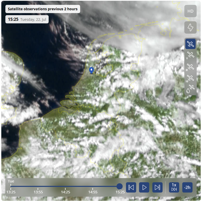 De meest convectieve bewolking is mooi in stroken gearangeerd. De kust heeft het nu zonniger dan het binnenland maar dat is meestal zo (klimatologisch).