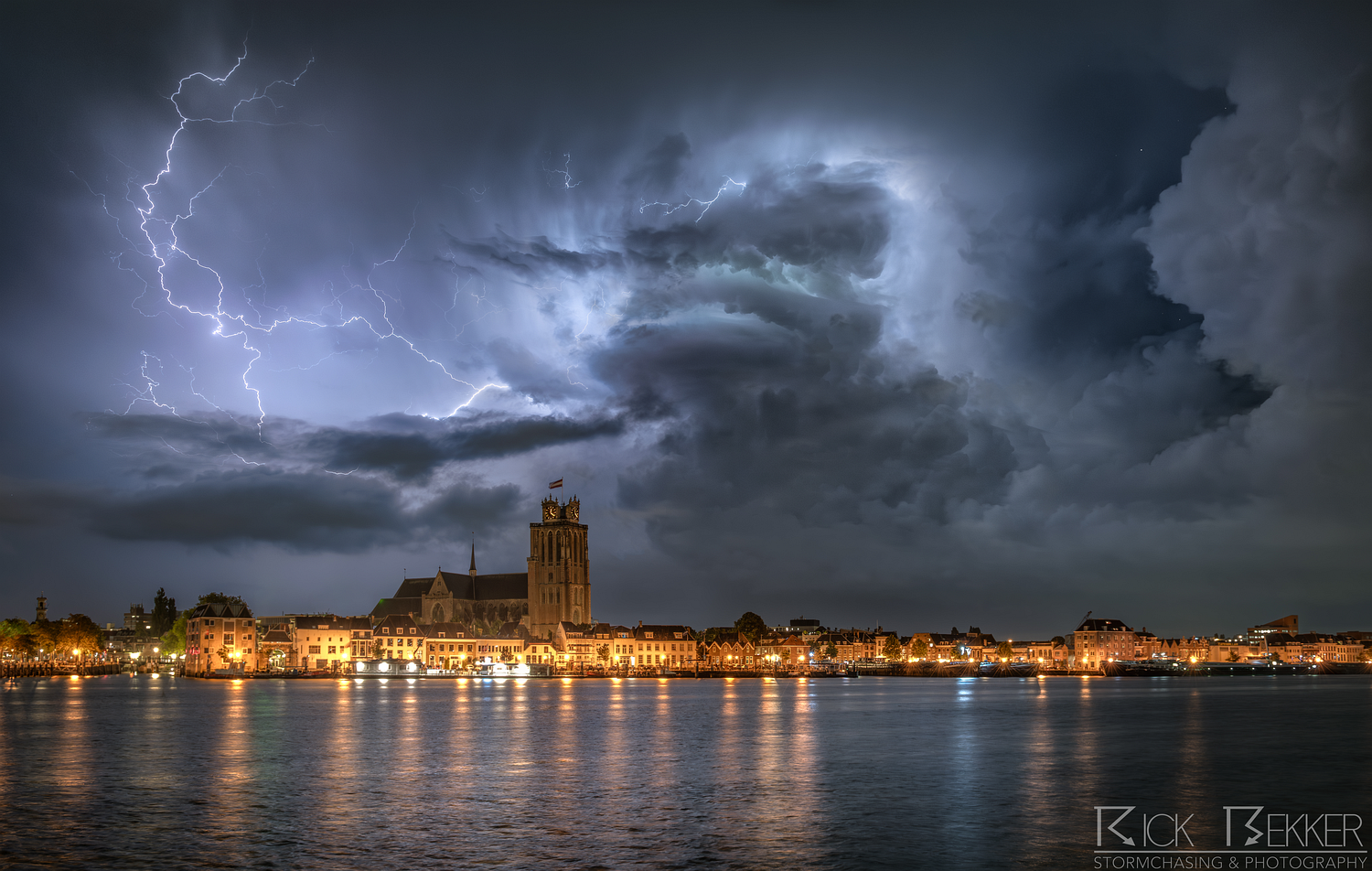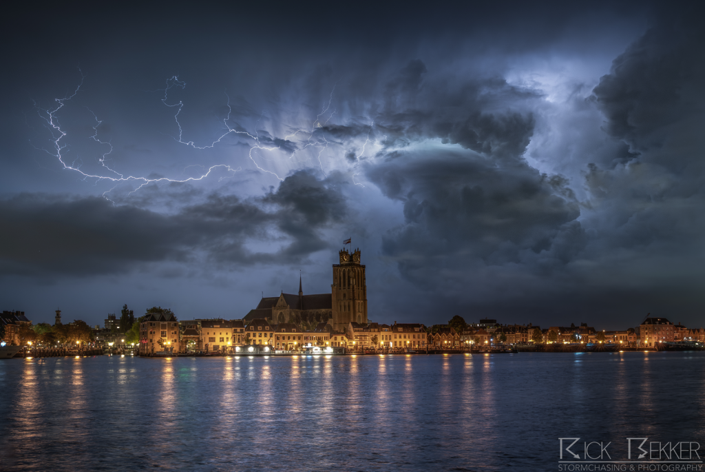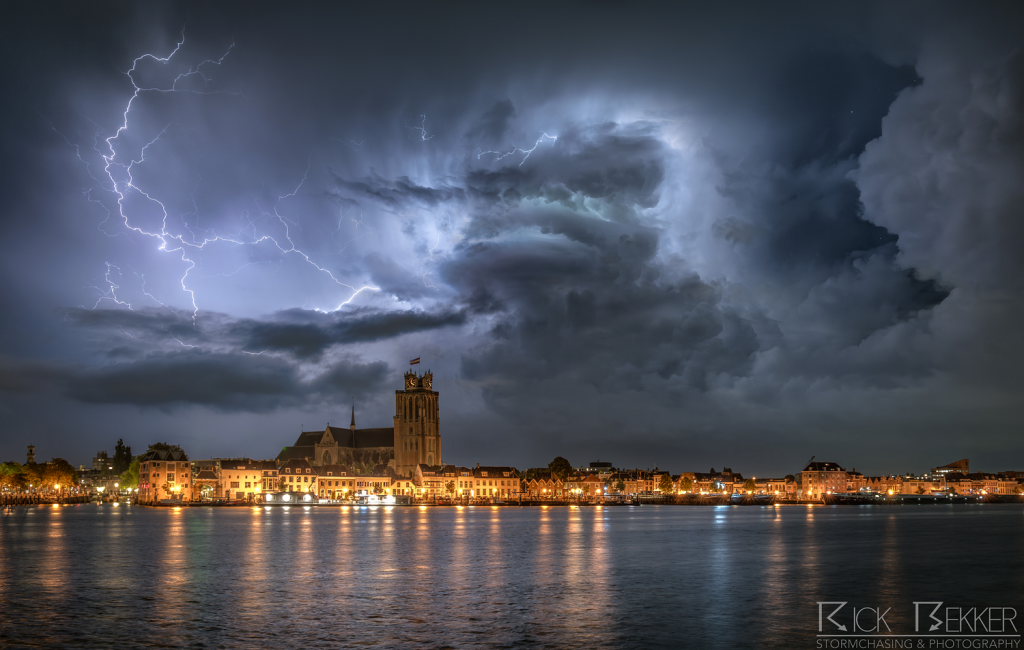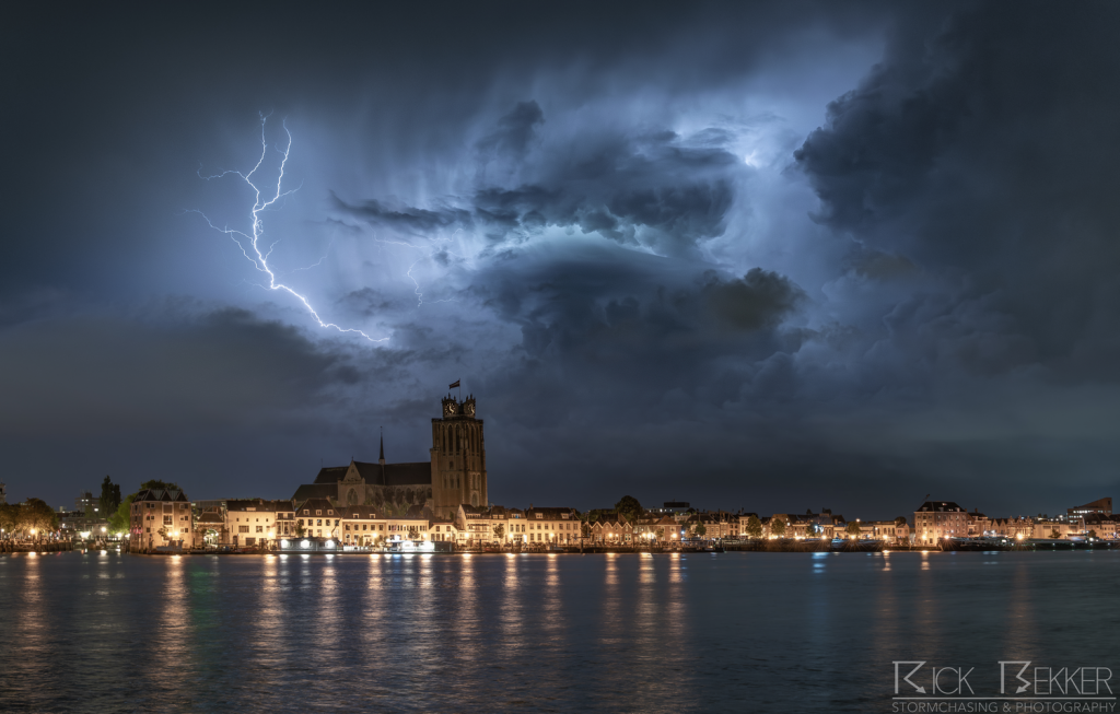 Een buitje getriggerd op een convergentielijn produceerde de nodige bliksem boven de biesbosch. Er was tevens voldoende schering aanwezig om de bui zo dusdanig te organiseren dat deze een fraaie roterende updraft kreeg. Een van de vele supercells na een dag vol diepe convectie.