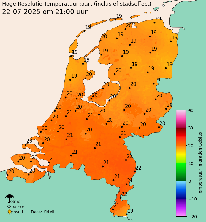 Vlaardingen was het ook aangenaam met halverwege de avond nog circa 21 graden. Zelfs om middernacht nog even buiten gezeten voor het slapen gaan, toen nog 19 graden.