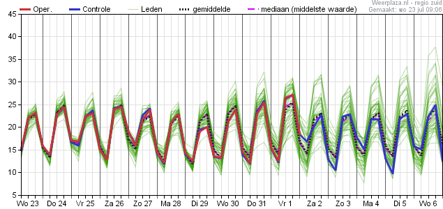 Afgelopen tijd wil de temperatuur ook nog wel eens iets hoger uitpakken dan de pluim, landinwaarts zit je dan al snel rond de 24-25 graden op de meeste dagen.