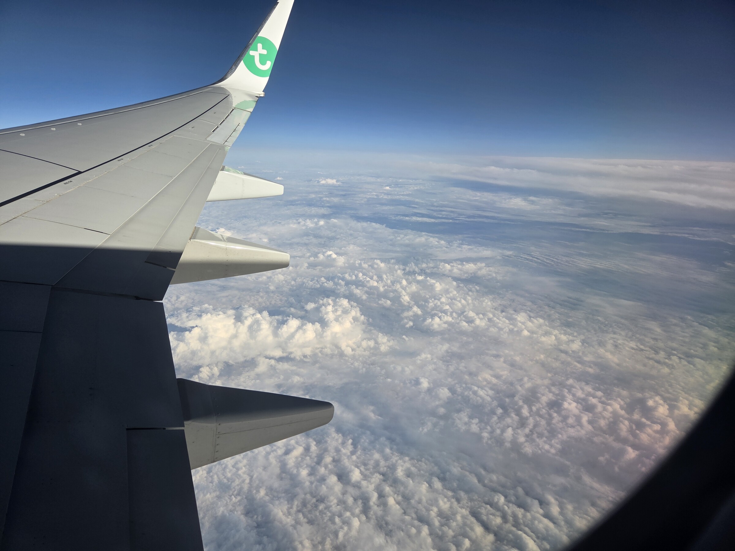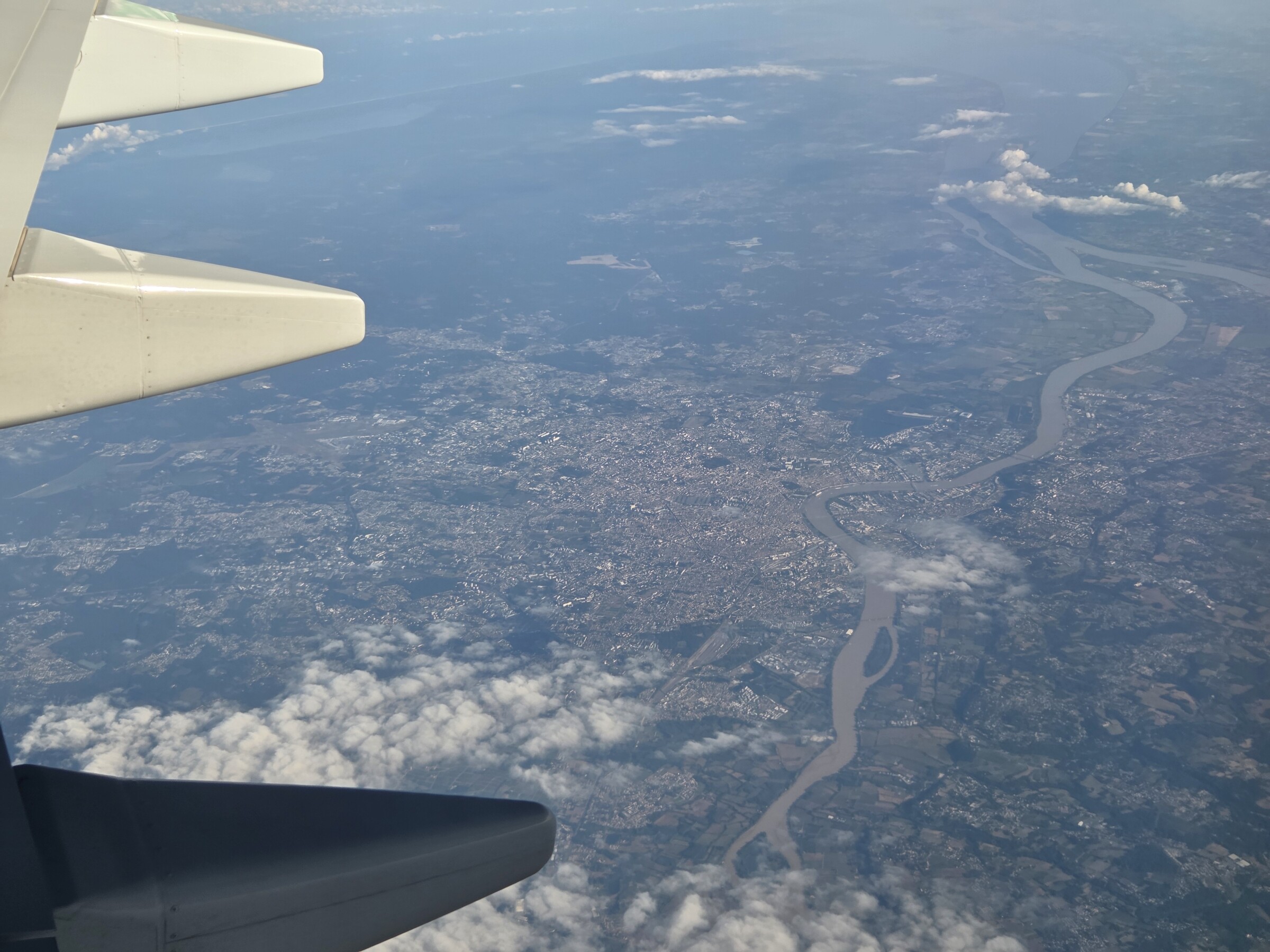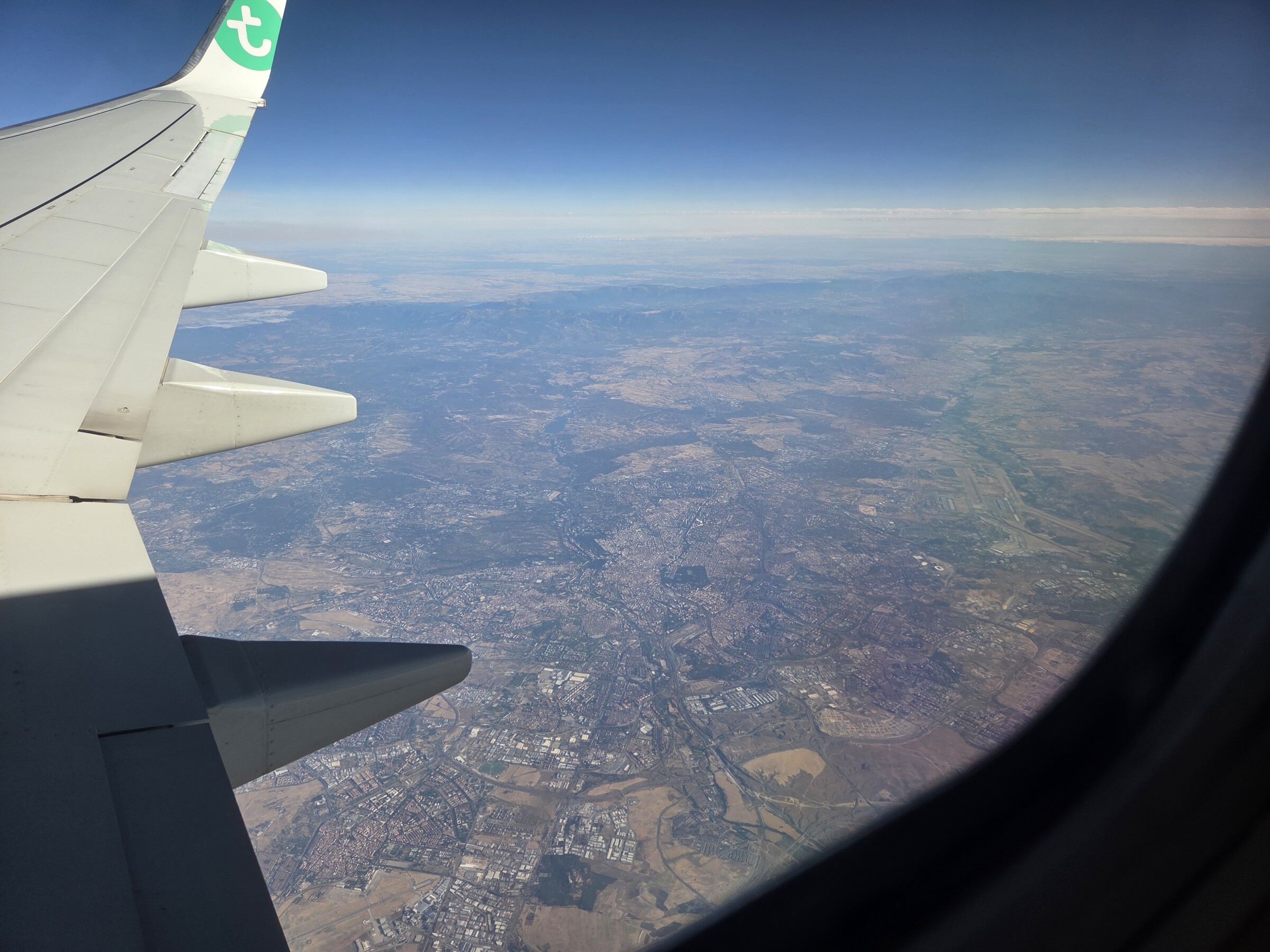 De stratus zorgde nog voor wat vertraging (30 minuten) in de vorm van mist. Pas richting Bordeaux begon het breeduit op te klaren, na de Franse wijnstad ook over Madrid gevlogen. Erg mooi om van zo hoog gewoon steden te kunnen herkennen.