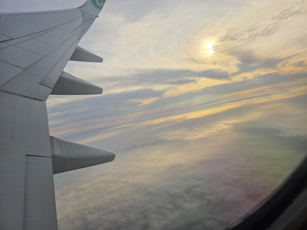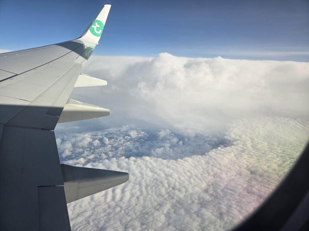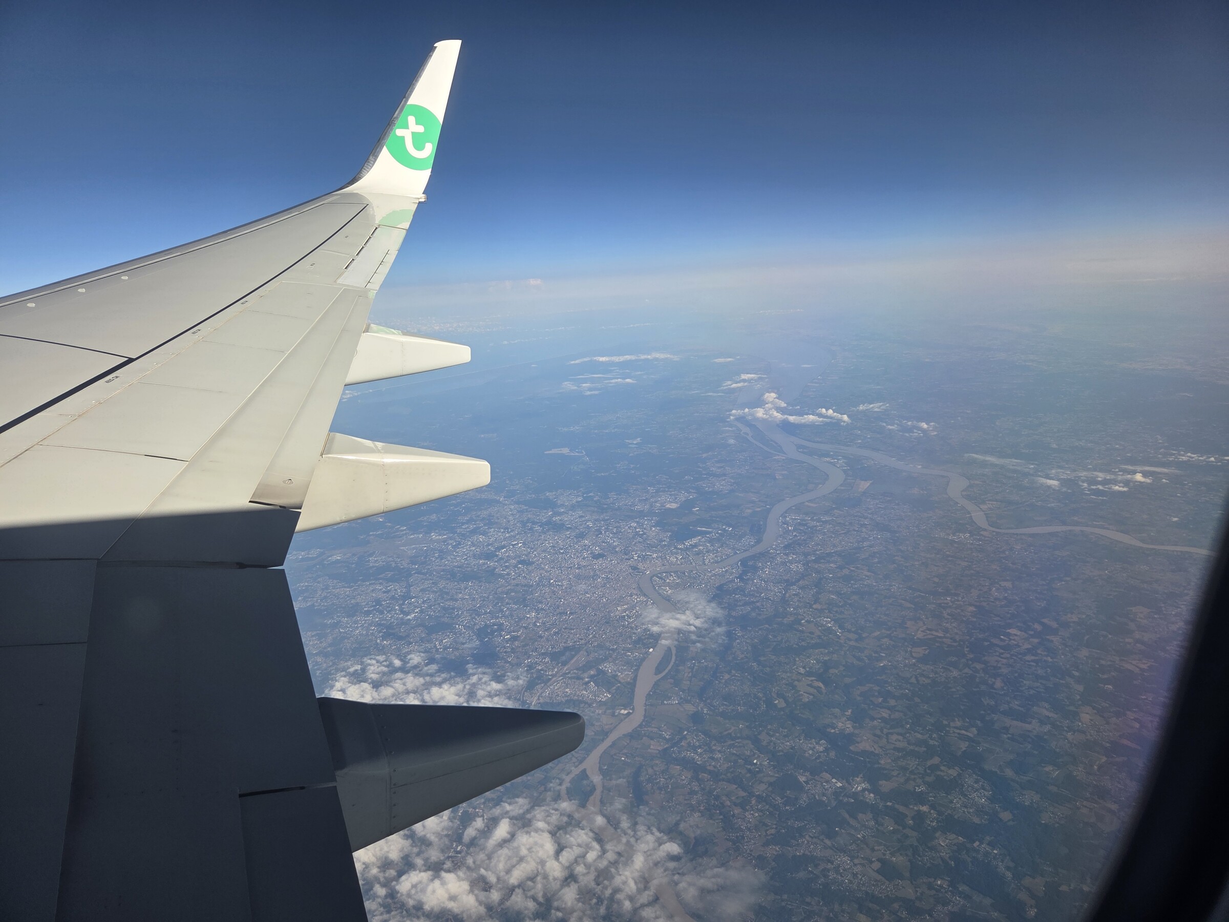 De stratus zorgde nog voor wat vertraging (30 minuten) in de vorm van mist. Pas richting Bordeaux begon het breeduit op te klaren, na de Franse wijnstad ook over Madrid gevlogen. Erg mooi om van zo hoog gewoon steden te kunnen herkennen.