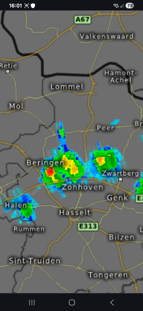 Feitelijk clustertje dat ontstaan is. Hier even tropische druppels, nu veelal matige regen. Soms wat hardere regen.