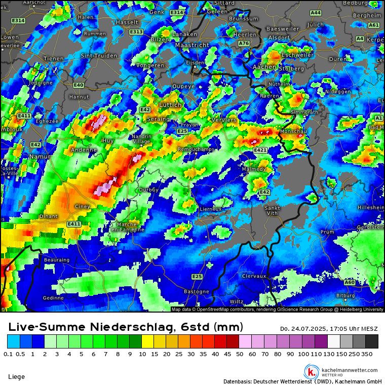 Opnieuw zijn er grote verschillen te zien. De grootste sommen vielen zo te zien net niet in de gebieden waar in juli 2021 overstromingen plaatsvonden; trouwens ook op 1 juni 2018, waar ik zelf een aparte herinnering aan heb.
