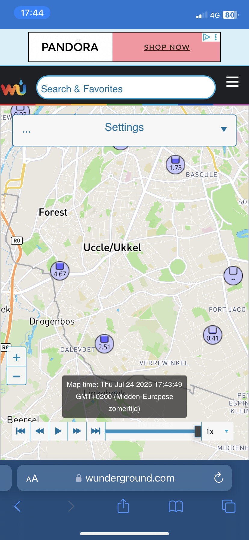 Het maandtotaal van juli gaat direct zo stevig omhoog. Ook in oost Vlaanderen, Antwerpen en Limburg plaatsen met hoge neerslagsommen
