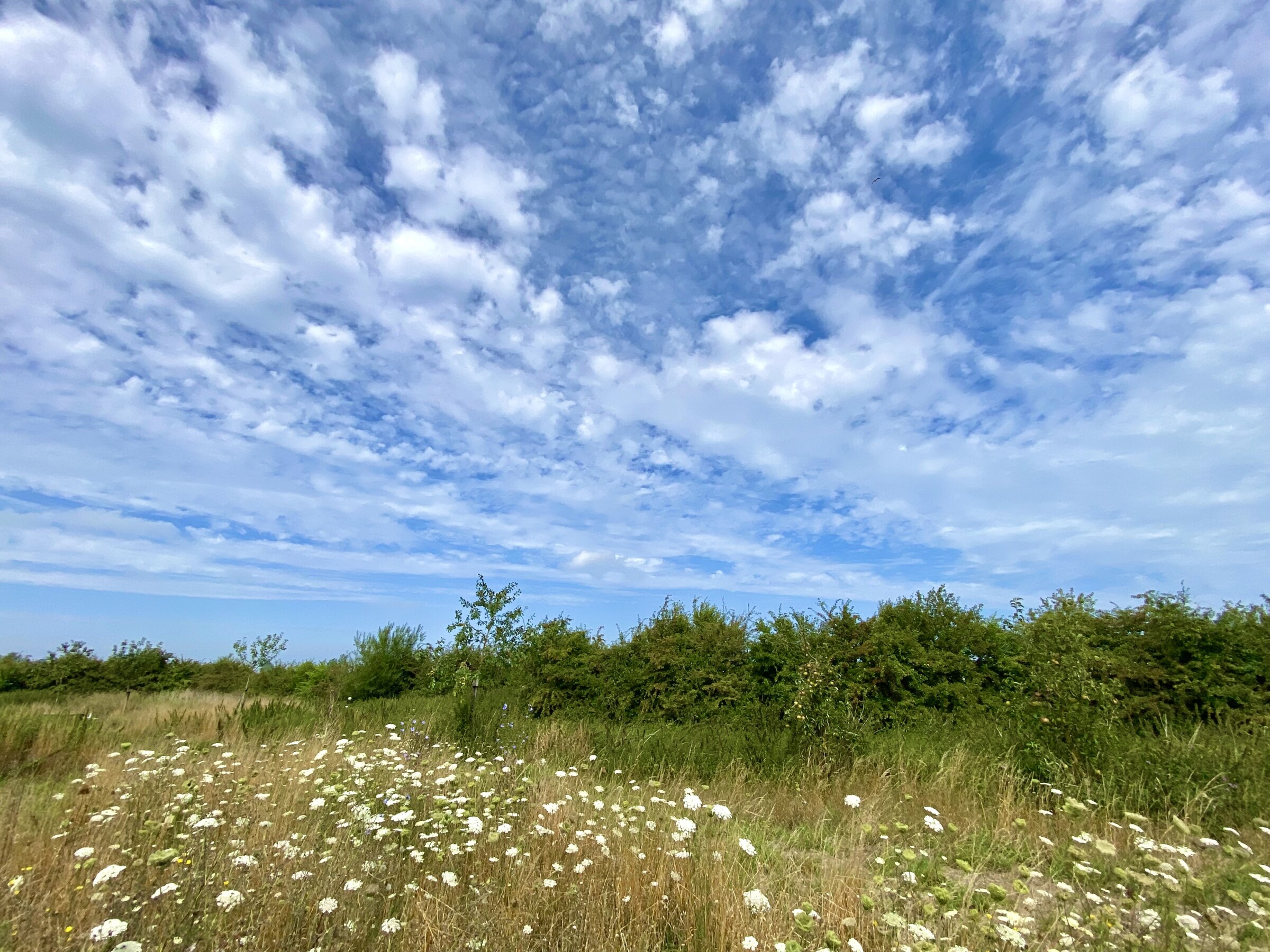 Ik weet dat er veel last hebben van stratus en mss ook een te natte maand in Nederland, maar hier hebben we eigenlijk al maanden zeer zonnig en ook te droog weer, net als vandaag. Hier een foto vanuit m’n biodiversiteitsweide