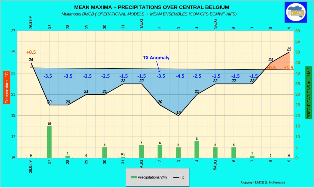Deze relatieve koelheid gaat regelmatig gepaard met neerslag, minstens tot 7 augustus.