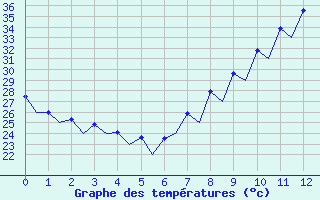 Tact om 14:00 alweer vlot 35,6°C op het vliegveld.